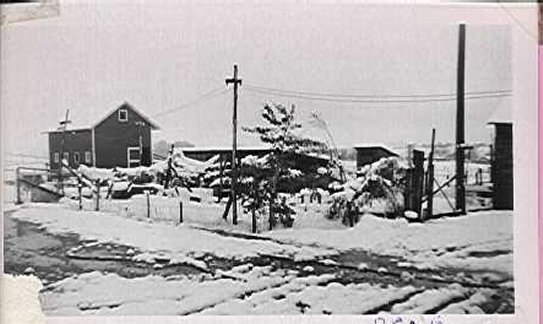 This is a photo of the farm that "Once Upon a Time" was at 5485 South Broadway in Littleton. It was taken in the early 1940s. In about 1958 to 1960 (my memory is faulty) the property was sold and is now occupied by a bowling alley. It was all farmland into the 50s. I can remember riding horse in the fields behind the corral and barn. There was an unimpeded view from Broadway to the mountains with only a few scattered farms in between. It doesn't seem that long ago, yet I suppose it is. It is certainly difficult to visualize that innocent time in the midst of the car dealers and fast-food restaurants lining South Broadway now. Photo shows (left to right) the corral, barn, hen-house and pen, outhouse, and back of the garage. My grandparents J.W. and Maude (Stone) Smith owned the farm. My grandfather was a livestock dealer in the Denver area since the 1910s and in Littleton since the 1920s.