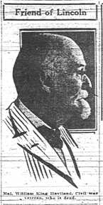 Major William King Haviland, a Civil War veteran and a personal friend of Abraham Lincoln, died yesterday morning at the home of his daughter, Mrs. H. E. Adams, 1700 Hudson Street. He was 84 years old.