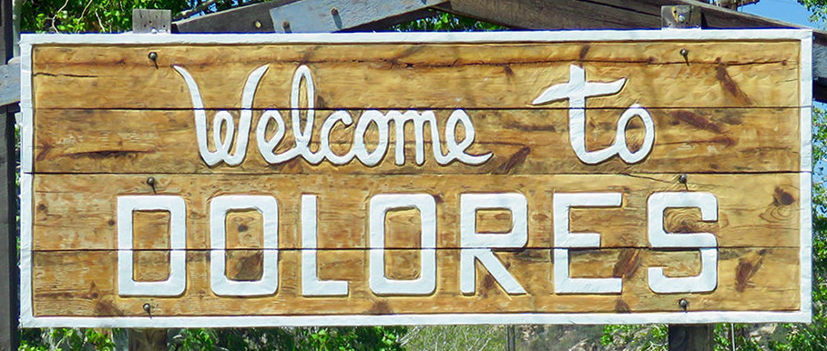 Dolores County's name comes from the Dolores River, the Rio de Nuestra de los dolores reported by Father Escalante in 1776. Rico, the only town in the county in 1881 was named county seat. It lost the designation to Dove Creek in 1941 because of the latter's increased population and business activity, and the formers mining decline. Today, the town of Dolores is in Montezuma County.