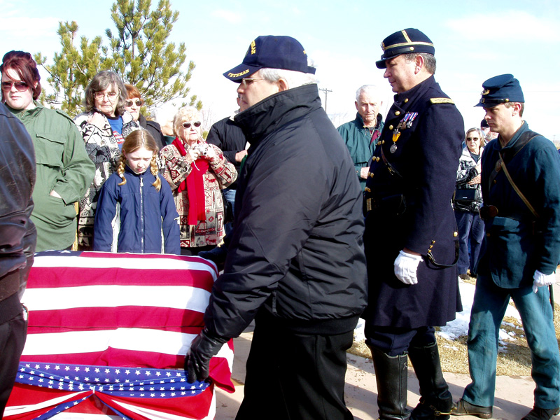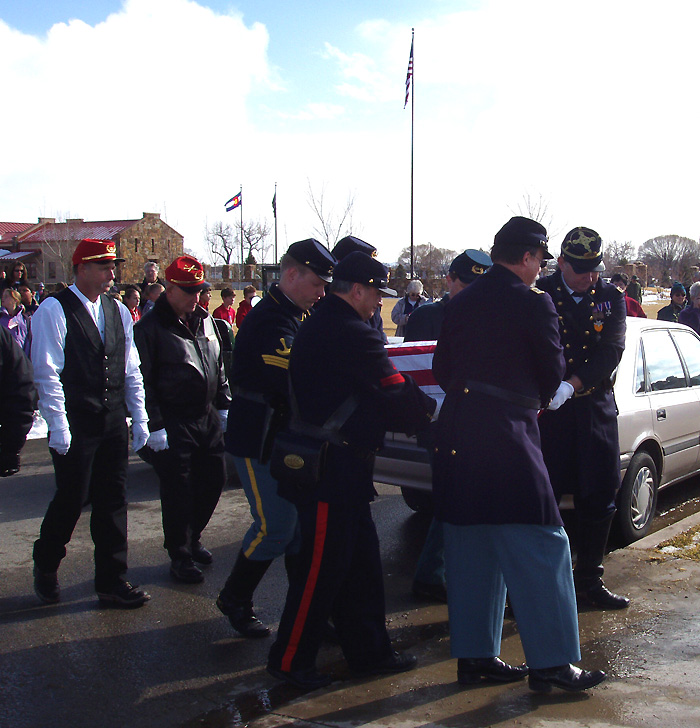 He was between 35 & 45, so the Veterans Cemetery, Sheriff Dept, Sons of Union Veterans, Legion of the West, Camp Number 7 helped with the burial today. The identity of the solider is unknown and the first unknown buried in the Veterans Cemetery in Grand Junction.
