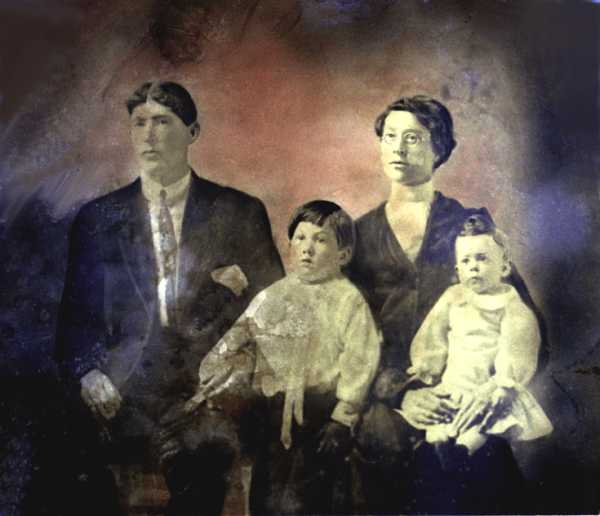 Photo History CAPTION: My grandparents photo of La Plata County. Photo: Abt. 1916 Eugene Alonzo Baker, Madge Ethel Smith Children: Claude Dallas Baker, Lela Myrtle Baker