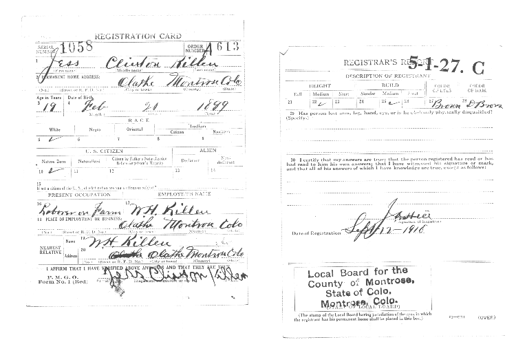 The information below was abstracted from by Raymond H. Banks from civilian registration cards completed in 1917-1918. All rights reserved. Some men do not have birth locations listed because they registered on the final draft registration day in 1918 when this information was not recorded. Almost 24 million men registered for the draft -- not always in the county of residence.