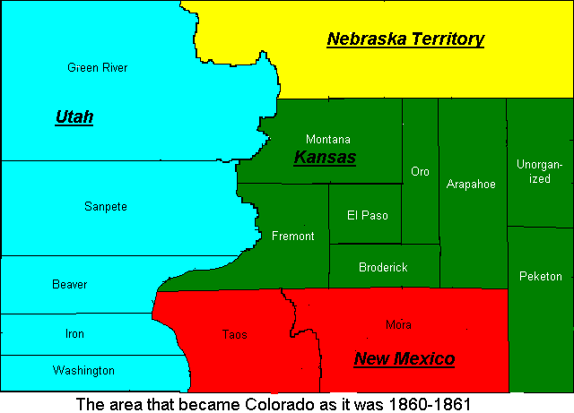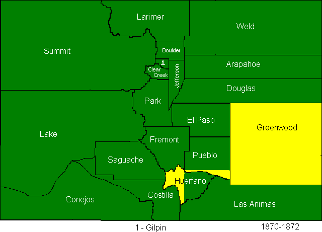 The creation of Greenwood county to finally cover the Cheyenne Reservation also brought with it several other changes. Greenwood took part of Huerfano county, and Pueblo also took a bit of Huerfano county. Huerfano county took the southern half of Fremont county as a consolation for losing so much of the eastern part of the state.