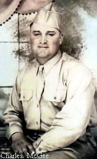Private McGee was inducted into the army on February 21, 1944. He trained at Camp Fannan, Texas, and was shipped overseas July 17 of the same year. He was injured in service September 11, 19441, in France and hospitalized in England, later going back into service.