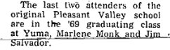 May 1953 "The Pleasant Valley school enjoyed Friday with a nice program and basket dinner for Mrs. Pearl Osborn, teacher, will move to