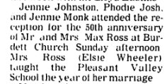 April 18, 1929 "In Miss Johnston's Hilltop school two pupils passed the eighth grade examinations, Ruby Northcut and Melvin Brady."