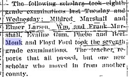 who passed the seventh grade examinations were Beulah Monk, John Johnston and Leroy Spelts."