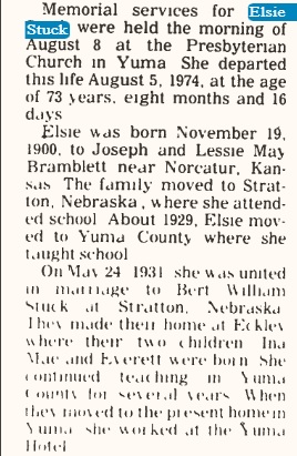 After retirement she moved to Yuma for several years, until moving to Windsor to live with a son and daughter-in-law until her death.