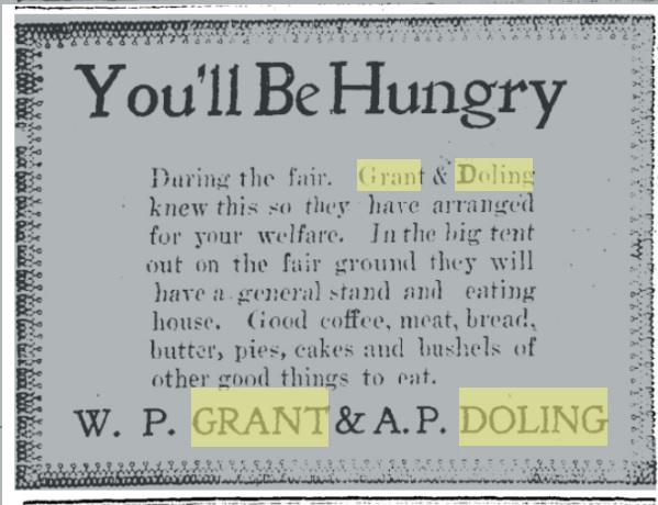 August 1924 " Mr. and Mrs. W. P. Grant of Denver were Sunday guests of Dr. and Mrs. C. C. Crawford.