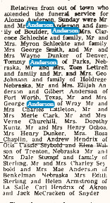 Coming to Cedaredge from Otis in 1954, Mr. Anderson was employed by the Town of Cedaredge and was a special deputy sheriff in the county. He was born Oct. 24, 1907,. at Holdrege, Neb.