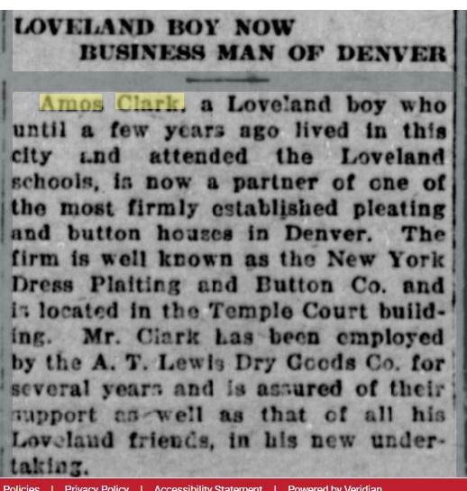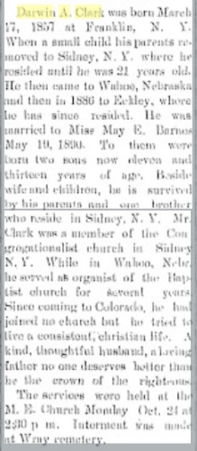 He lived at 2800 Elm st. Mr. Clark came to Denver in 1909. He was a salesman for a number of years