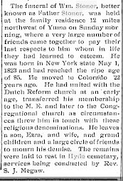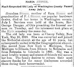 In 1885 Saunders County, Nebraska, Ezra Stoner is a hotel keeper, 34, with Orena 22 his wife. Frank J. is 13, John W. seven months. William 62 and Marah 67 are also with them.