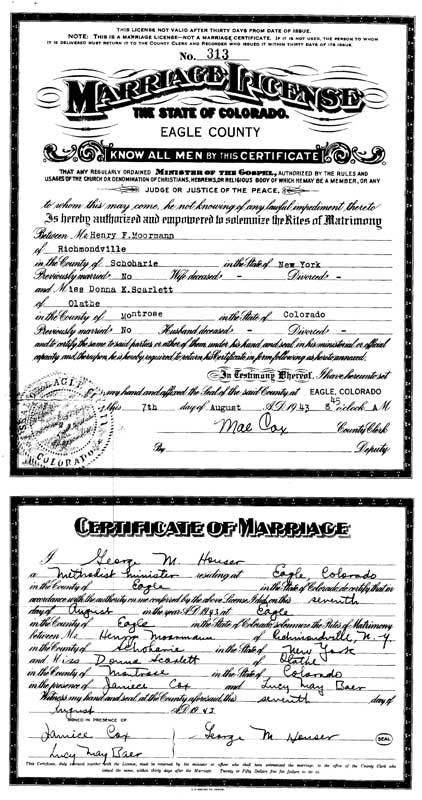 OK, this is weird... I KNOW my folks got married in Eagle, Eagle County, Colorado at the local Methodist Church. Photos, ya ya ya. When doing searches, it says EL PASO county, NOT Eagle County.... Also says that they got married June 12, 1943 In El Paso County rather than August 7, 1943 in Eagle County.