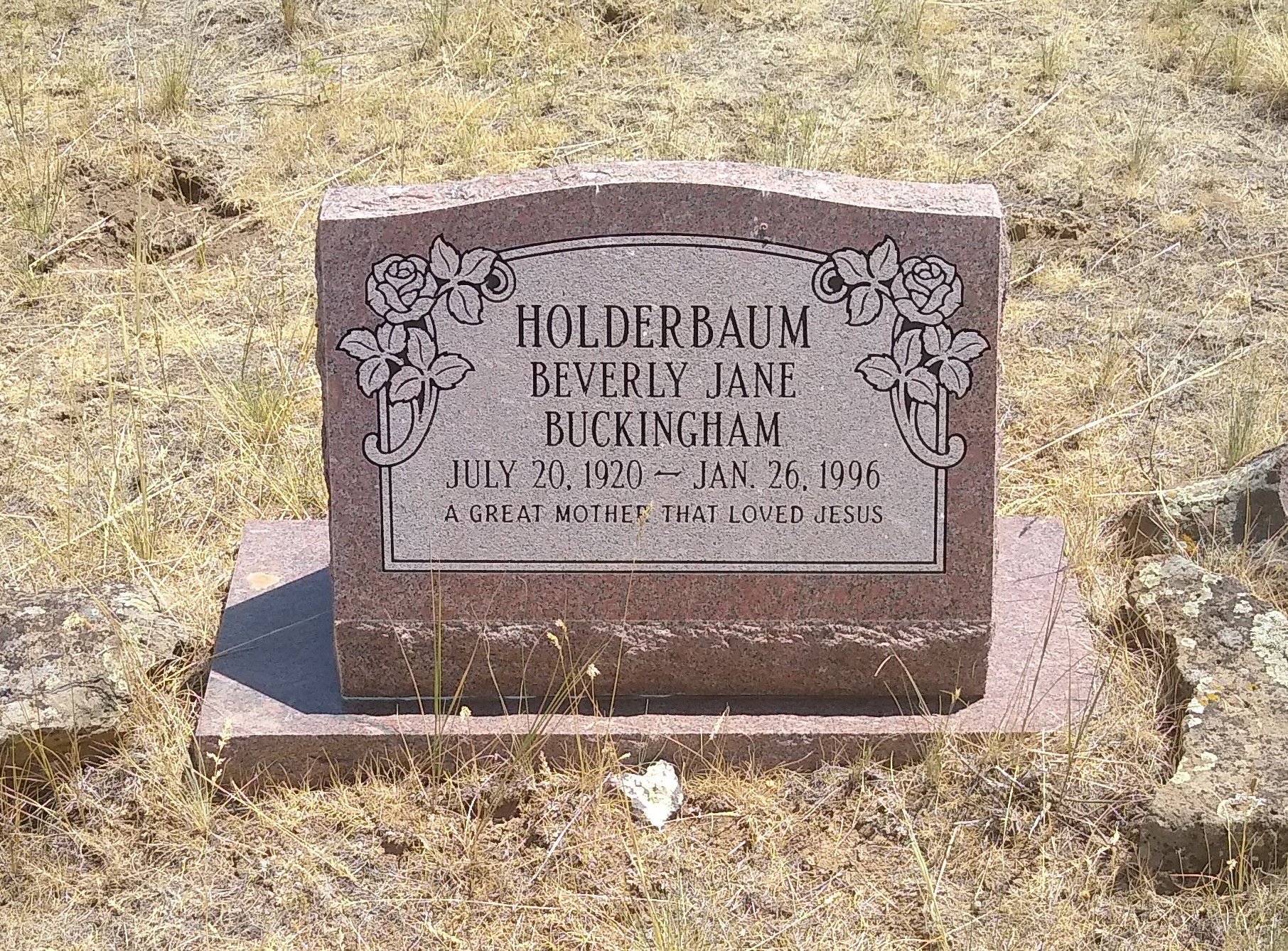 Beverly Jane Buckingham Holderbaum July 20 1920 - Jan 26 1996 A Great Mother that loved Jesus