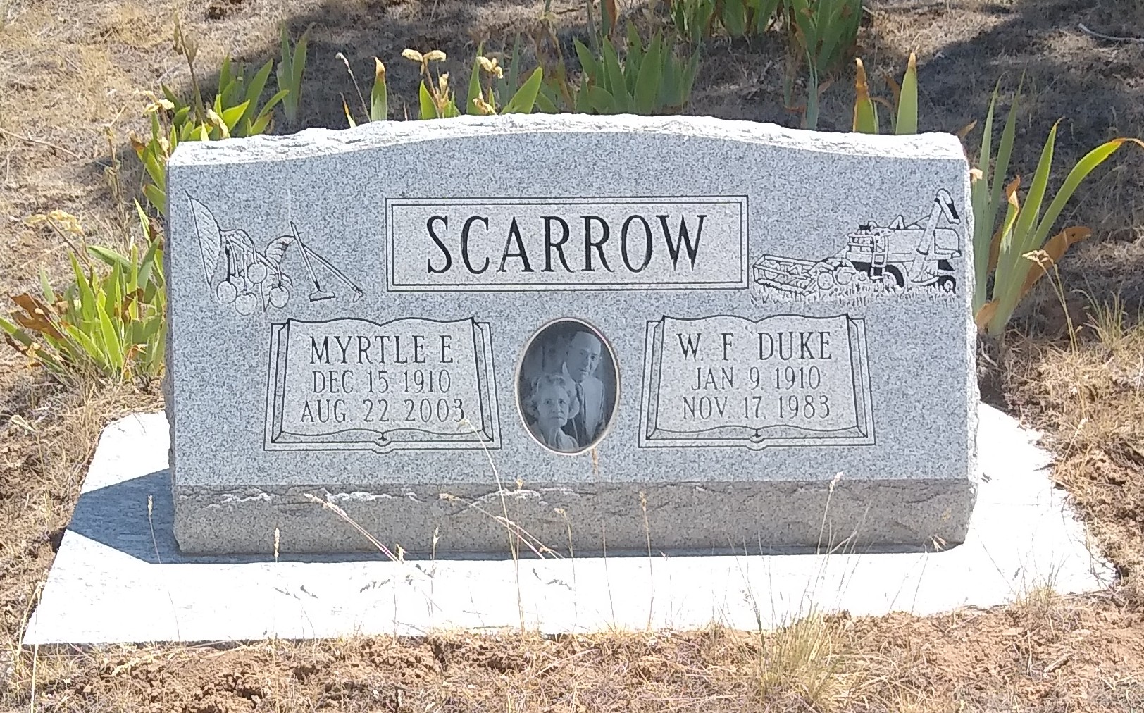 Myrtle E Scarrow Dec 15 1910 - Aug 22 2003 W F Duke Scarrow Jan 9 1910 - Nov 17 1983