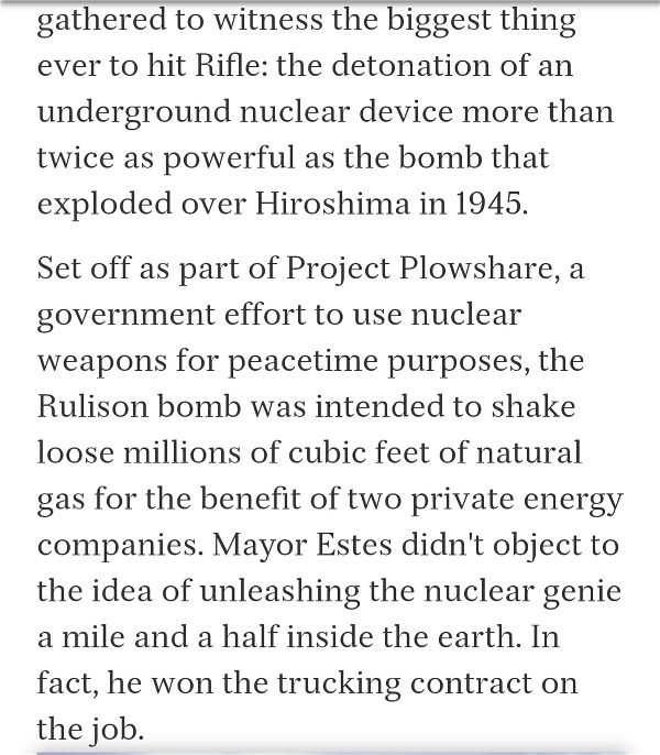 nuclear explosion near Rulison Colorado