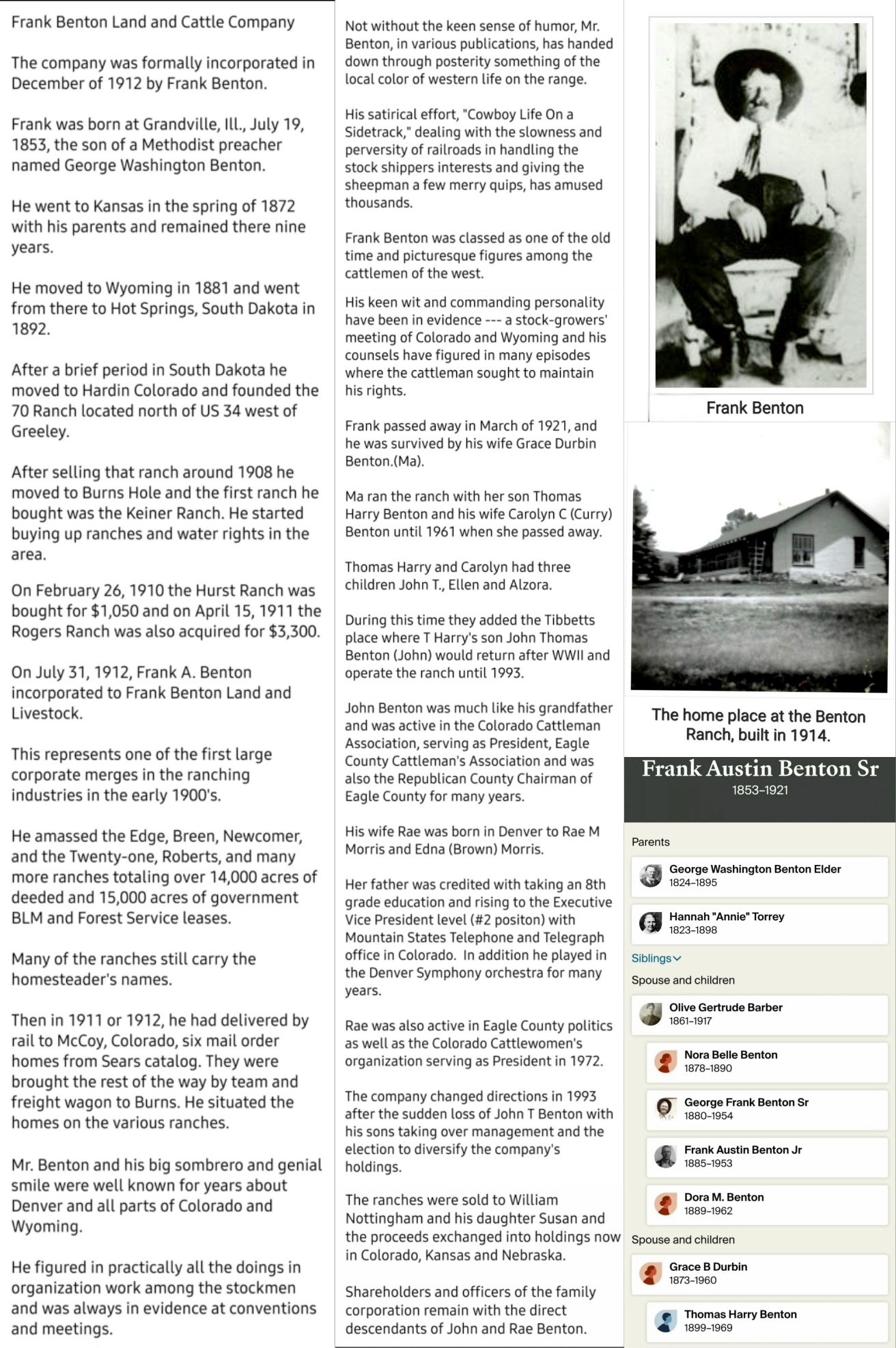 1912, Frank A. Benton incorporated to Frank Benton Land and Livestock.