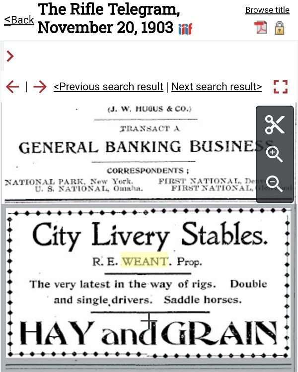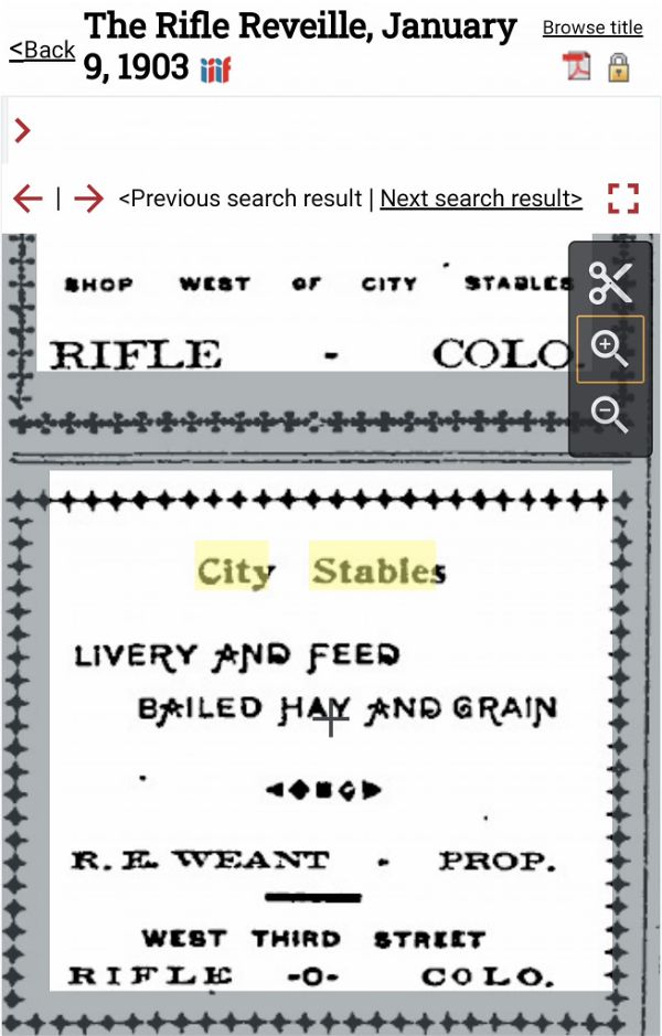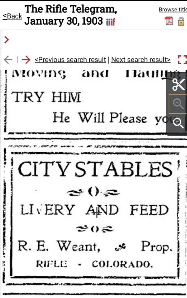 1902 fire in Rifle destroyed the Pioneer Stables and the Meeker Stables