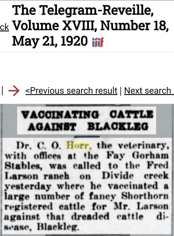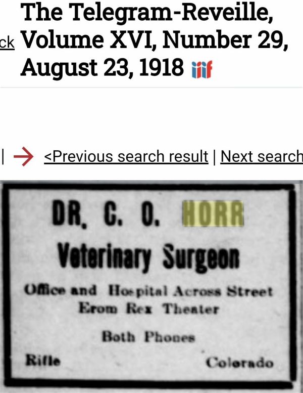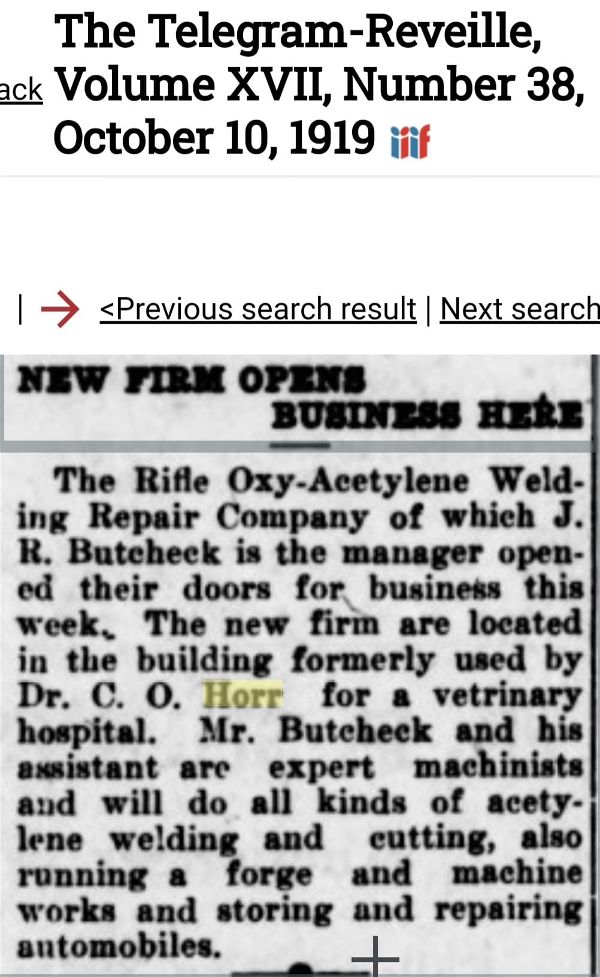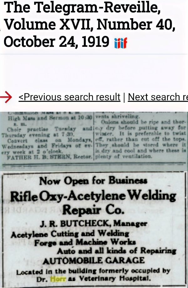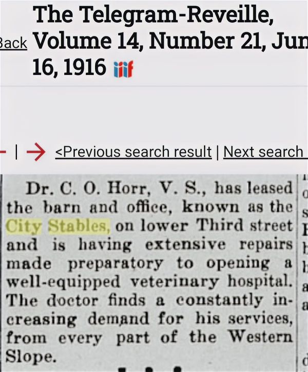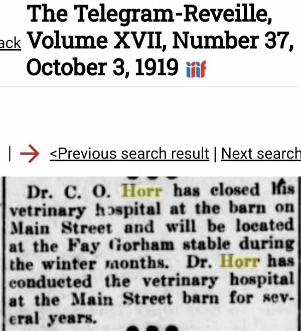 Dr. C. O. Horr leased the stable and converted it into a veterinary