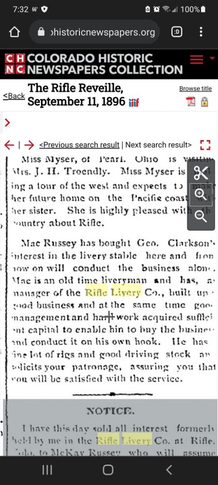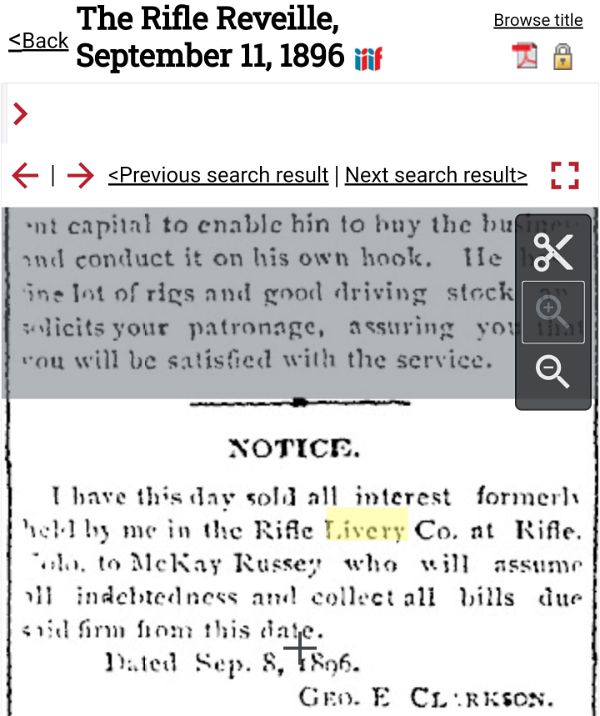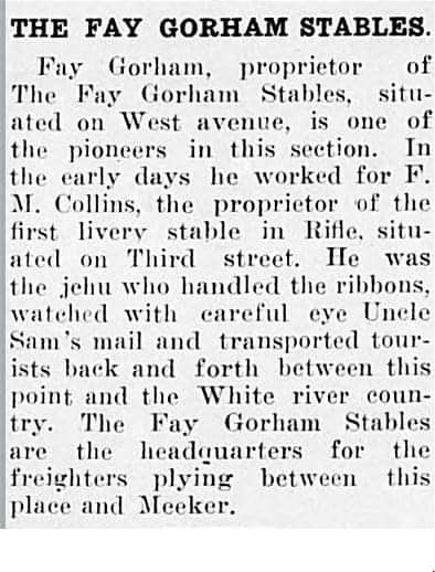About 1890, F. M. Collins built the first Livery in Rifle, ie Collins