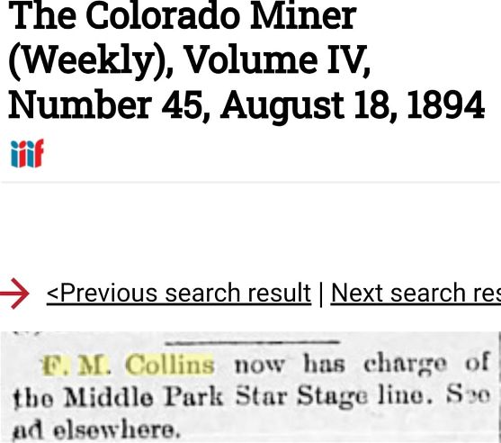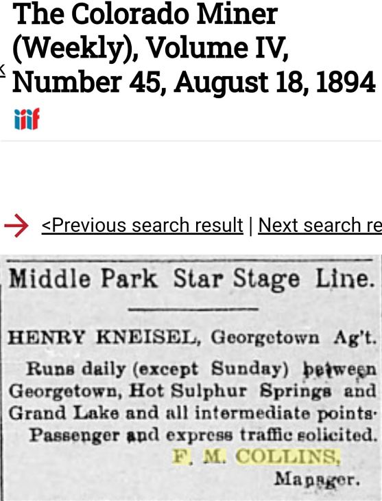 Collins was the Manager of the Middle Park Stage Line.