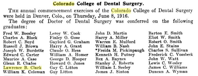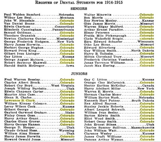 the Colorado College of Dental Surgery in Denver and was a Junior in the year