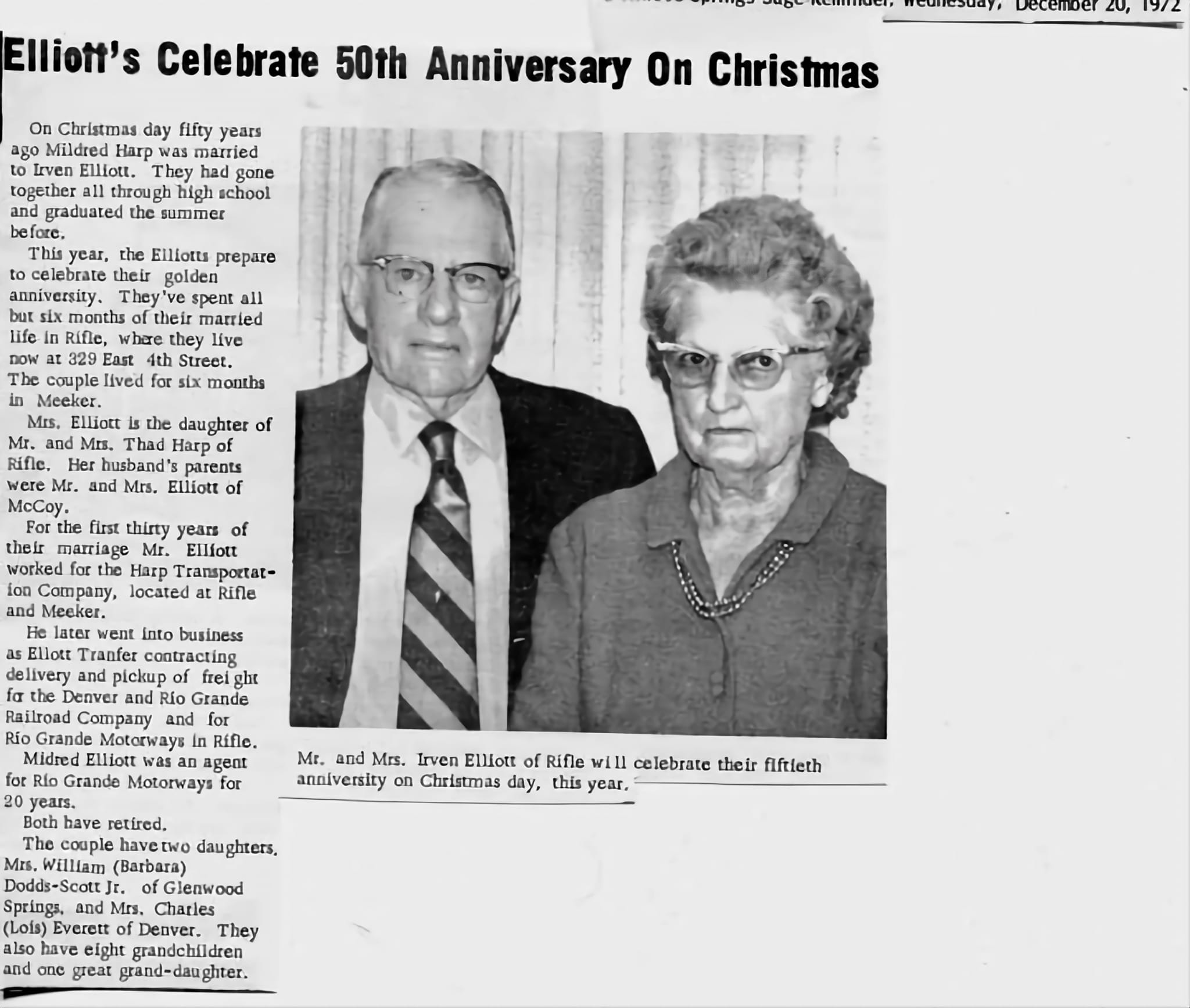 A brief bio for Mildred Harp and Irven Elliott.