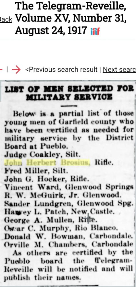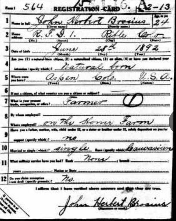 was born June 29, 1892 in Aspen. References call him John or Herbert and
