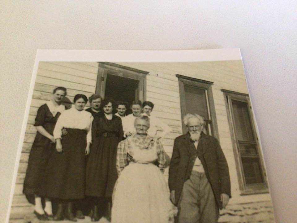 Back row: Winifred Silvery Hurlburt Christensen, My grandma Minnie Hester Hurlburt Clarke, cousin Lizzie Burnside (I think), Jesse Evelyn(?) Hurlburt Middle row: Alli Hurlburt- wife of Fred Fisher Hurlburt , Daisy June Hurlburt Green, Martha “ Mae” Hurlburt Burnside. Front: My Great Grandparents Martha Ann Rock and John Breeden Hurlburt.