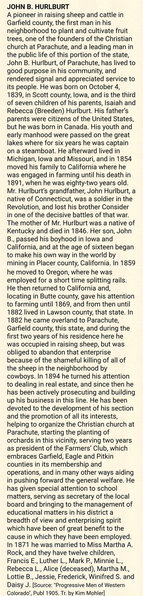 Hurlburt of Parachute has lived to good purpose in his community, and