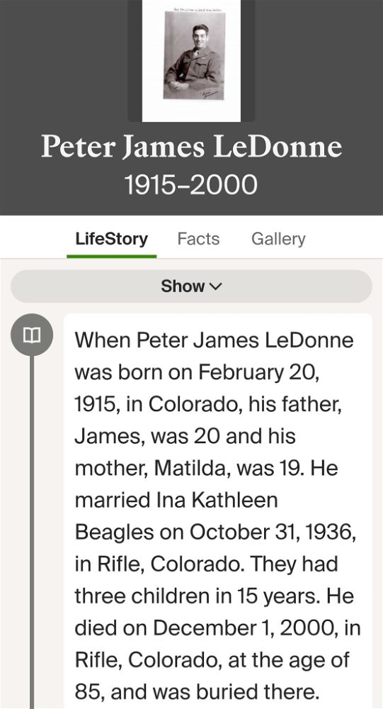 Army in WWII. There is a photo of him in his Army uniform captioned 1942