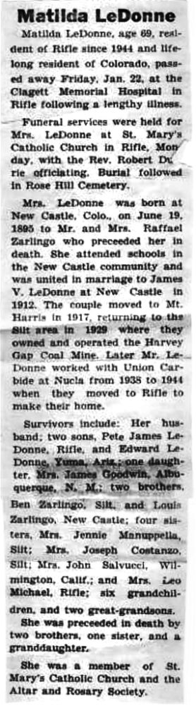 Zarlingo LeDonne of New Castle. The family moved to Mt. Harris in 1917.