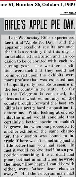 first Apple Pie day, and Rifle needed an exhibit hall/dance