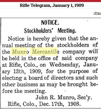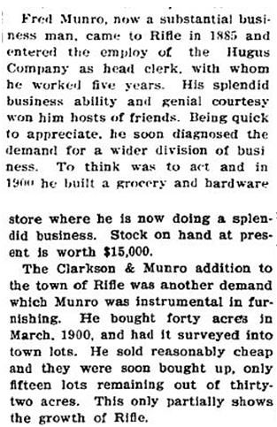 was unfinished. He platted the Munro addition to Rifle in