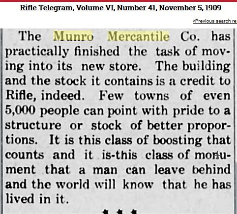 Fred Munro came to Rifle in 1885 and worked