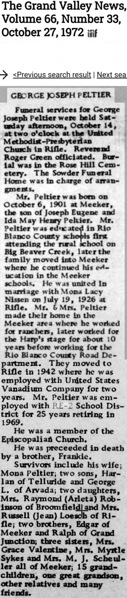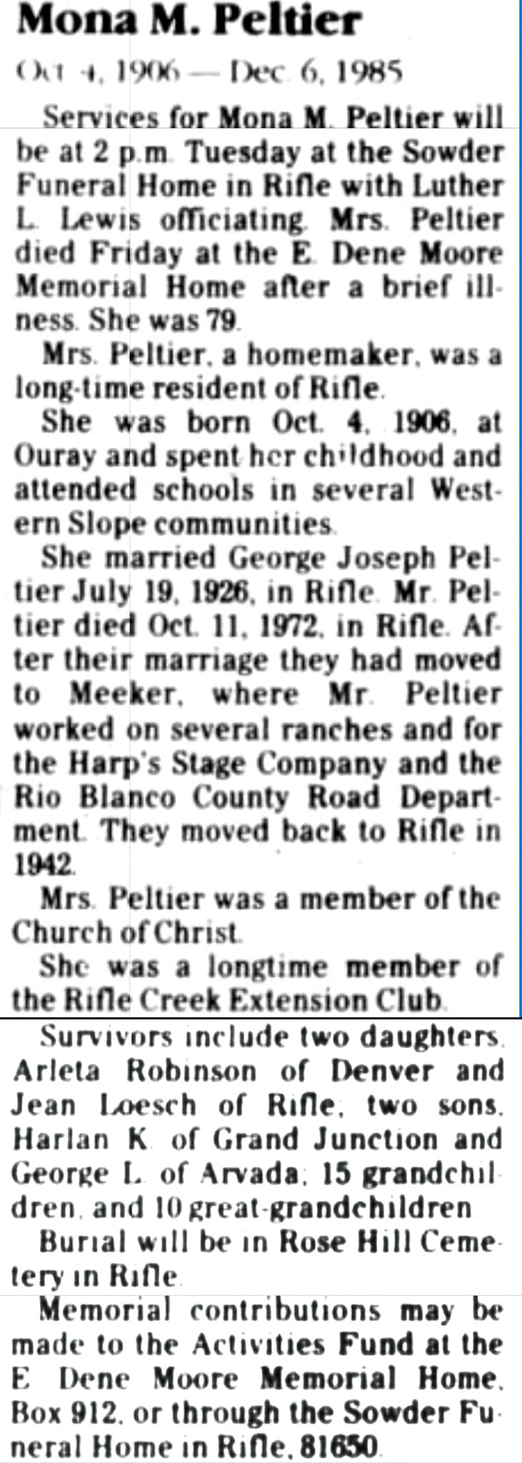 1926, in Rifle. They lived in the Meeker area, where Mr. Peltier worked