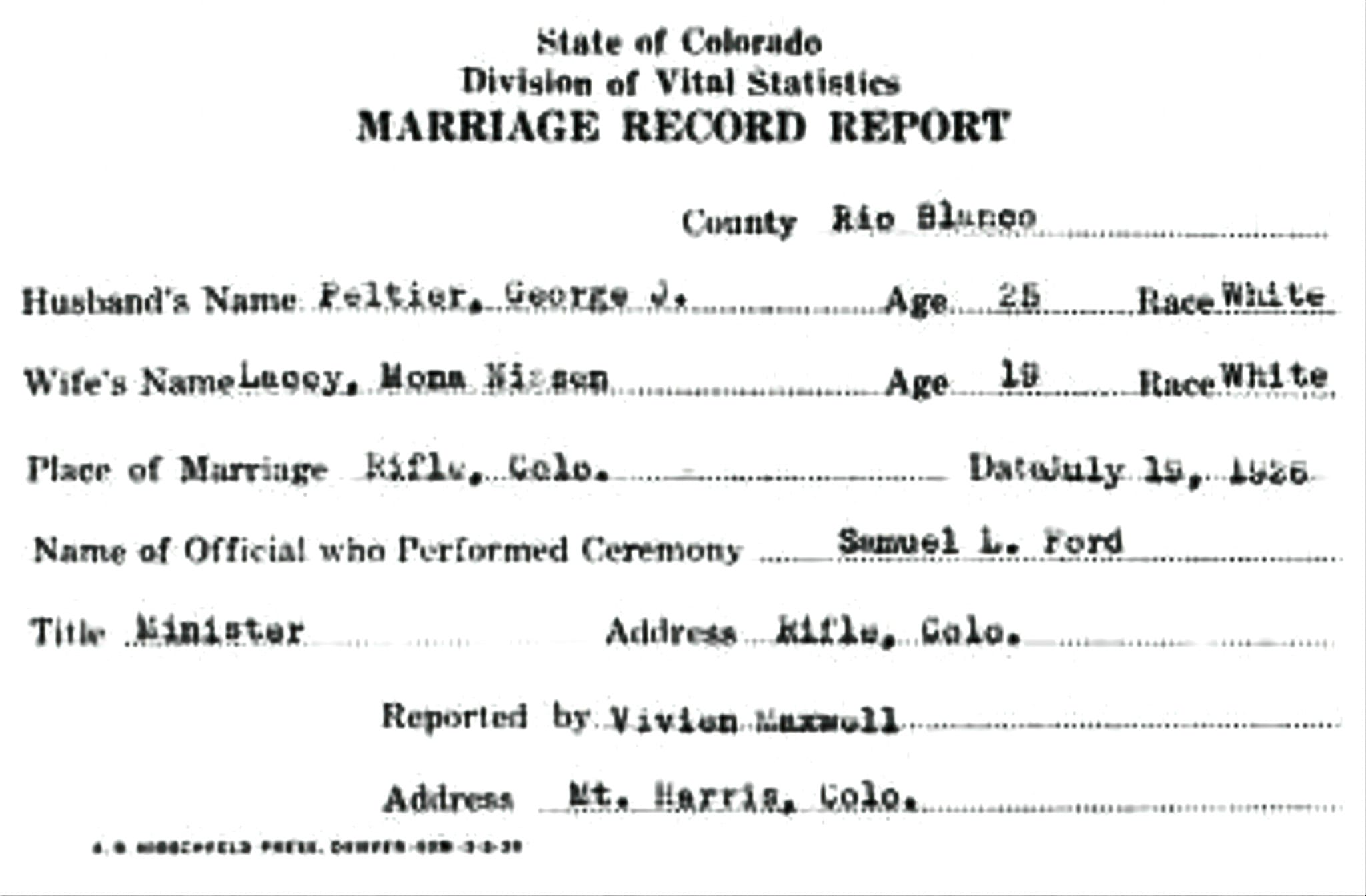married George Joseph Peltier on July 19, 1926. They lived in Meeker