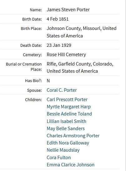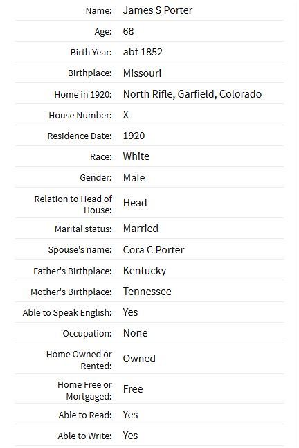 Another of Rifle's earliest pioneers was James Porter. He