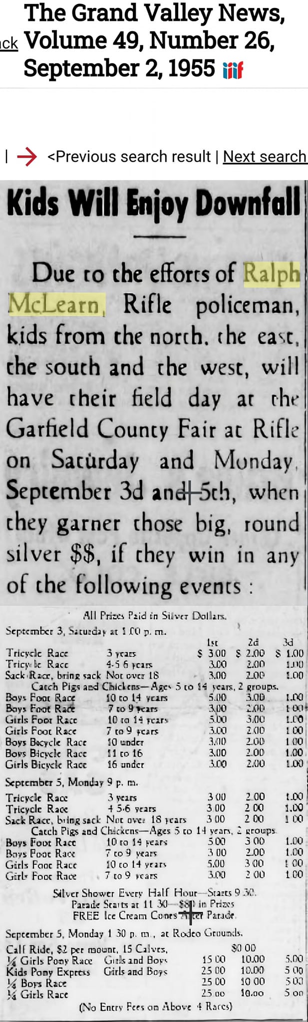 records report him to be Rifle City Marshall in 1953 and a policeman in