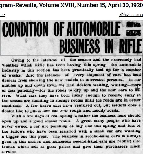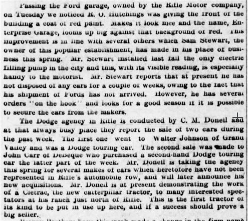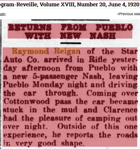 from Grand Junction May 6, 1920. Raymond personally drove a