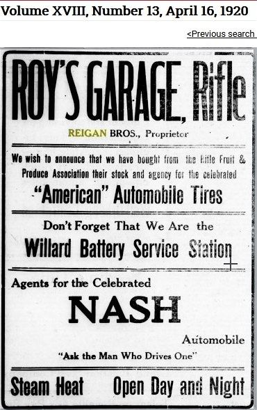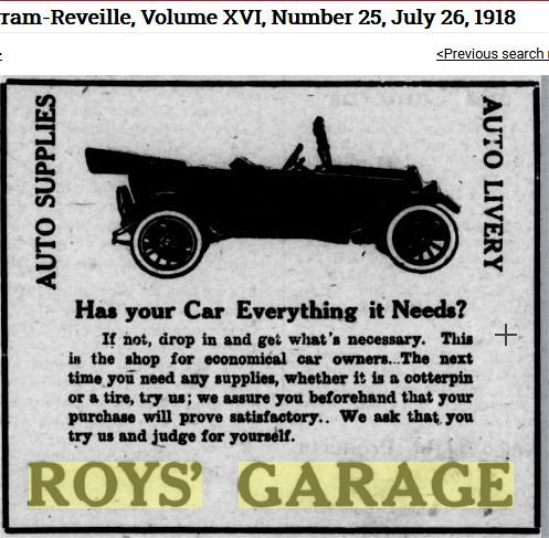 Clarence bought Roy's Garage in late 1919 or early 1920