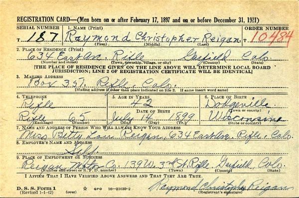 1948 going to work as general manager of Reigan Motors. He