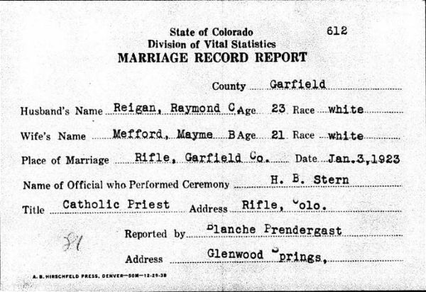 making it on into Rifle. January 3, 1923, Raymond married