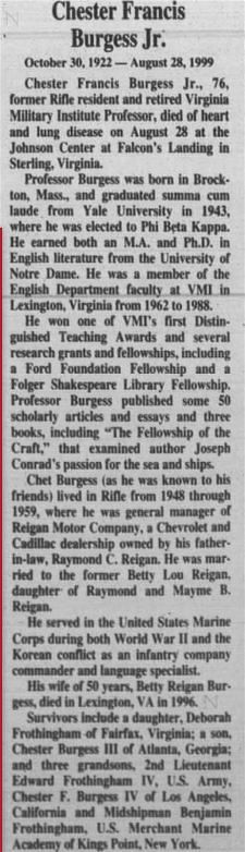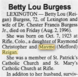 daughter Betty married Chester Burgess Jr in 1949 in Rifle.