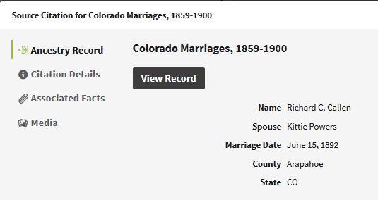 married 24 year old Kittie Powers June 15, 1892, in Arapaho County. However,