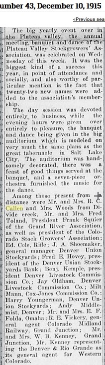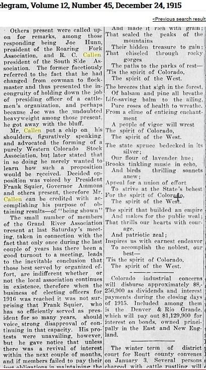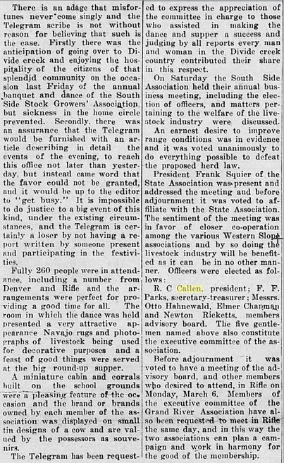 time Frank Squier of Rifle was President of both the Grand River and Colorado