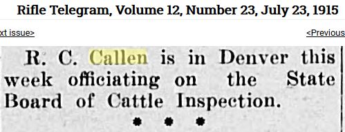 running 1300 head of cattle. The Callen ranch was eventually acquired by Raymond