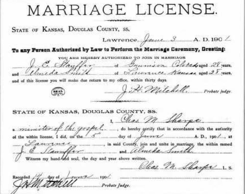 town. Jesse married Almeda Smith June 5, 1901, in Lawrence Kansas. Almeda was