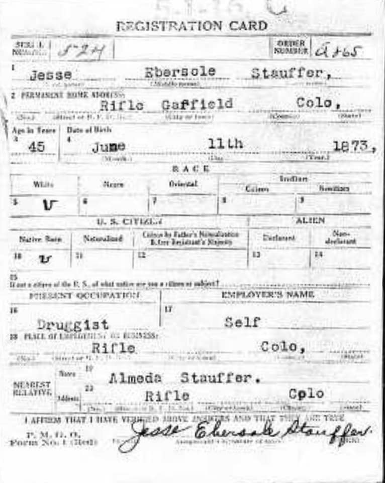 pharmacists in Rifle. This is their brief biography. Jesse Ebersole Stauffer