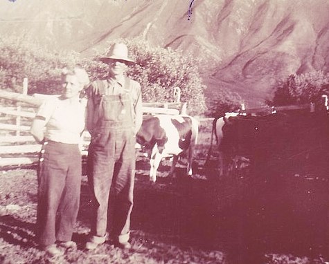 1940's - Elsie & Wesley Stayton at their home east of New Castle (West Canyon Nursery located here today). Coal Ridge in the background. Photo courtesy of Betty Dawson.